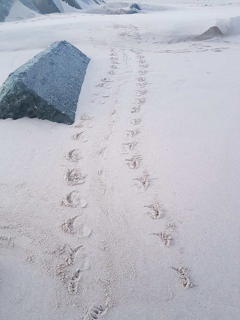 Zondagmorgen vroeg op het strand, laatste restje winter voordat de dooiaanval goed doorzet, laagwater, niemand te bekennen behalve dan veel vogels. Vlakbij, op het strand, een zwarte zee-eend. Laat zich goed benaderen. Nooit zo dichtbij voor de lens gehad, meestal op het water op zee, soms vlak voor de kust. In de winter in grote groepen op zee, of in kleinere groepjes voor de kust. Deze keer op het strand van de Maasvlakte. Zwart met gele snavel en knobbel, verwarring is niet mogelijk. Even gedacht dat het een verzwakt of ziek dier was, maar koos even later rustig vrolijk weer het ruime sop, gelukkig.