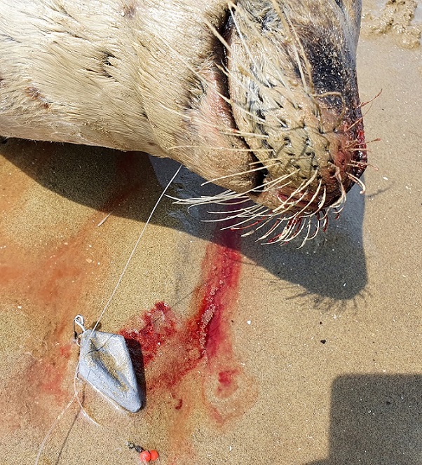 Een paar dagen geleden troffen we de zeehond die slachtoffer was geworden en gisteren werd er door Mieke een verstrikte zilvermeeuw gemeld.
