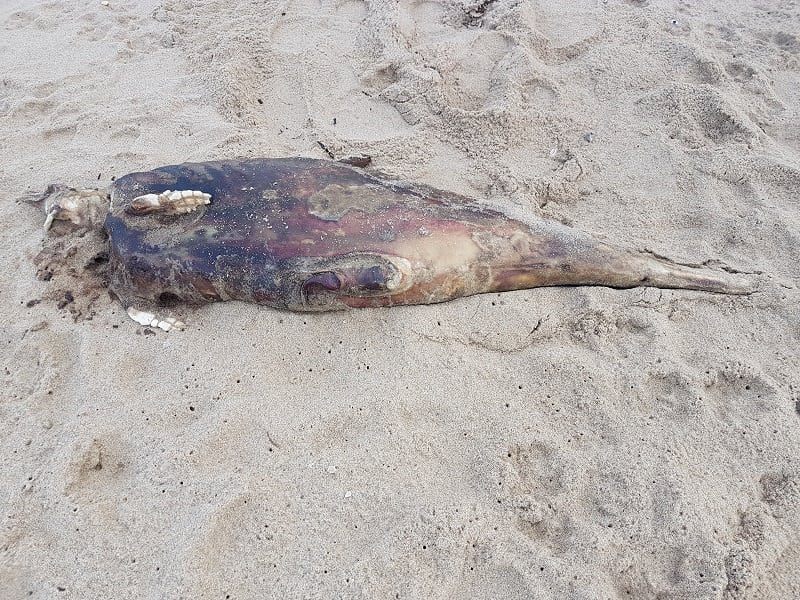 Een dame die met haar honden op het strand liep, ontdekte het kadaver en stuurde keurig een appje met de locatie erbij.