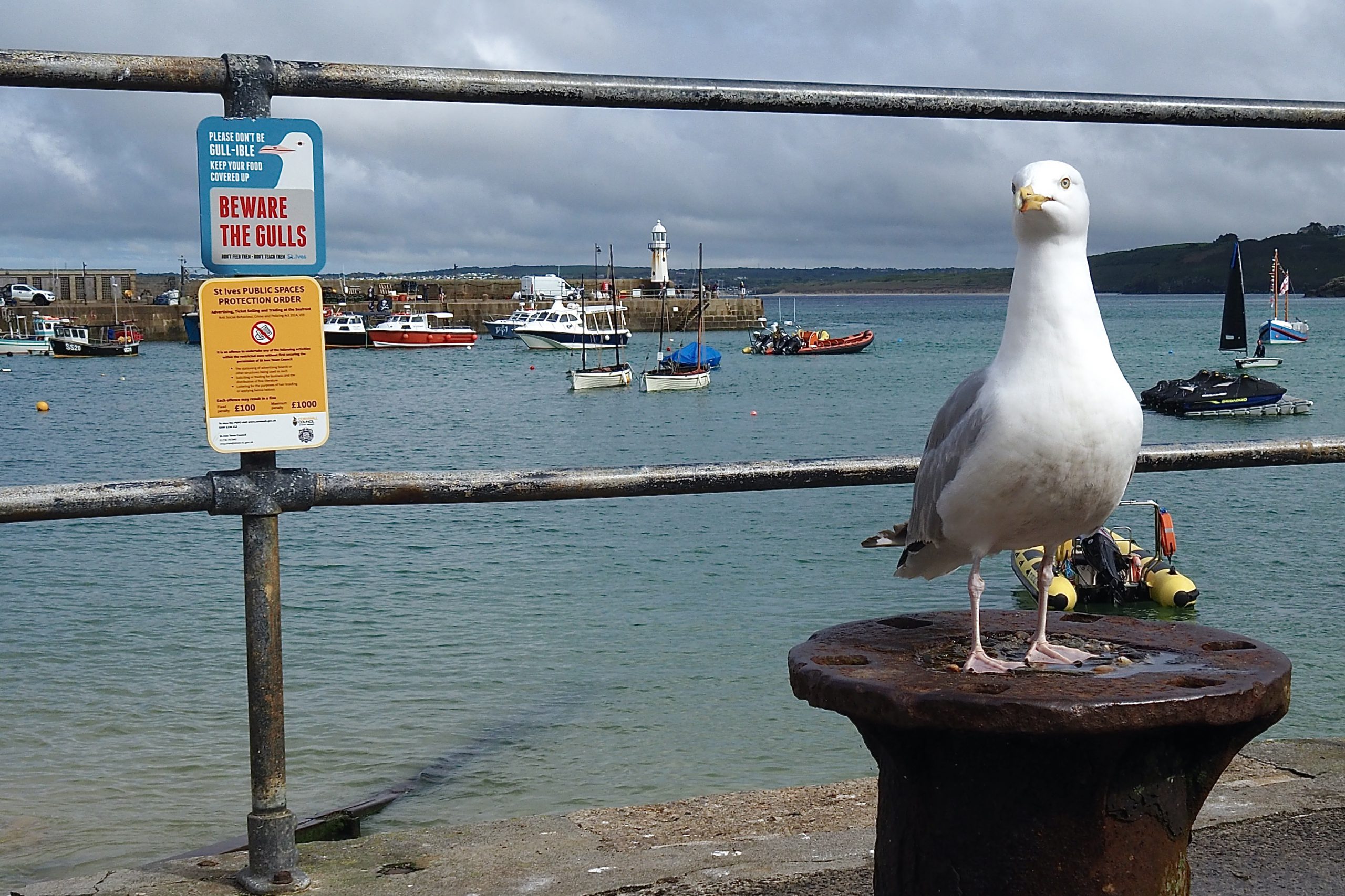 Bovenstaande afbeelding is nog het meest verwant: een Zilvermeeuw dermate gericht op voedsel van de argeloze voorbijganger dat hij zich van een afstand van 1 meter rustig liet fotograferen, in de haven van St Ives.
