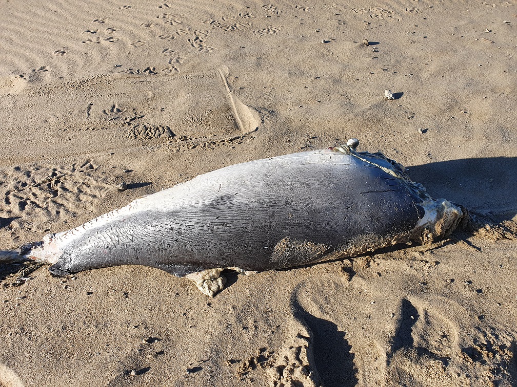 Melding via SOS Dolfijn: “Een dode bruinvis bij P6, Maasvlaktestrand.”