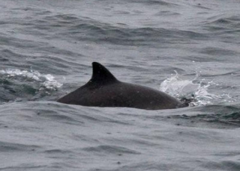Een donkere rond rug, een vin, even zichtbaar om daarna snel weer onder water te verdwijnen!