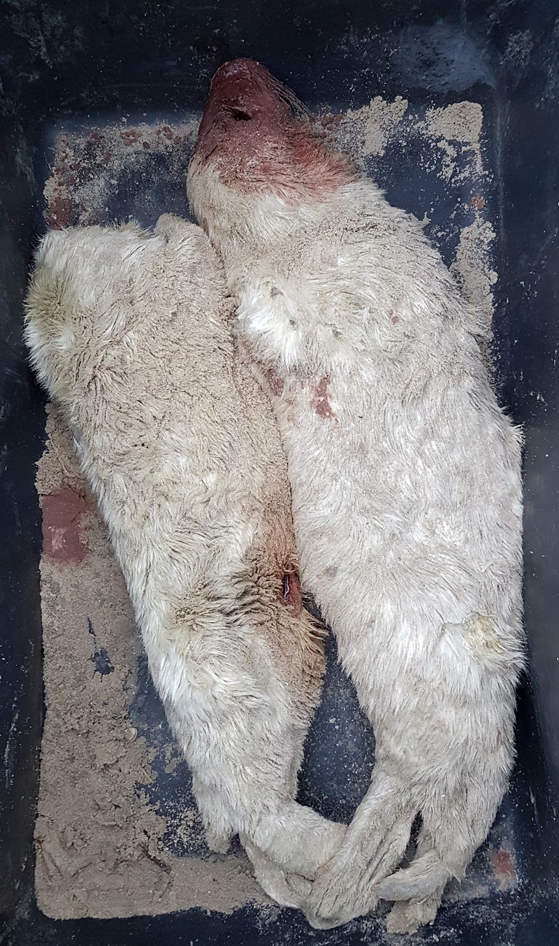 Diverse jonge grijze zeehonden waren gestrand na de storm en [...]