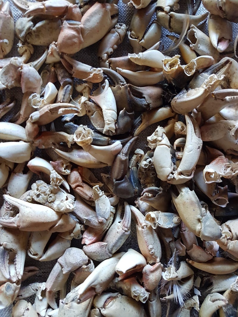 Een hoop veren, 2 poten en een kaal gegeten borst. [...]