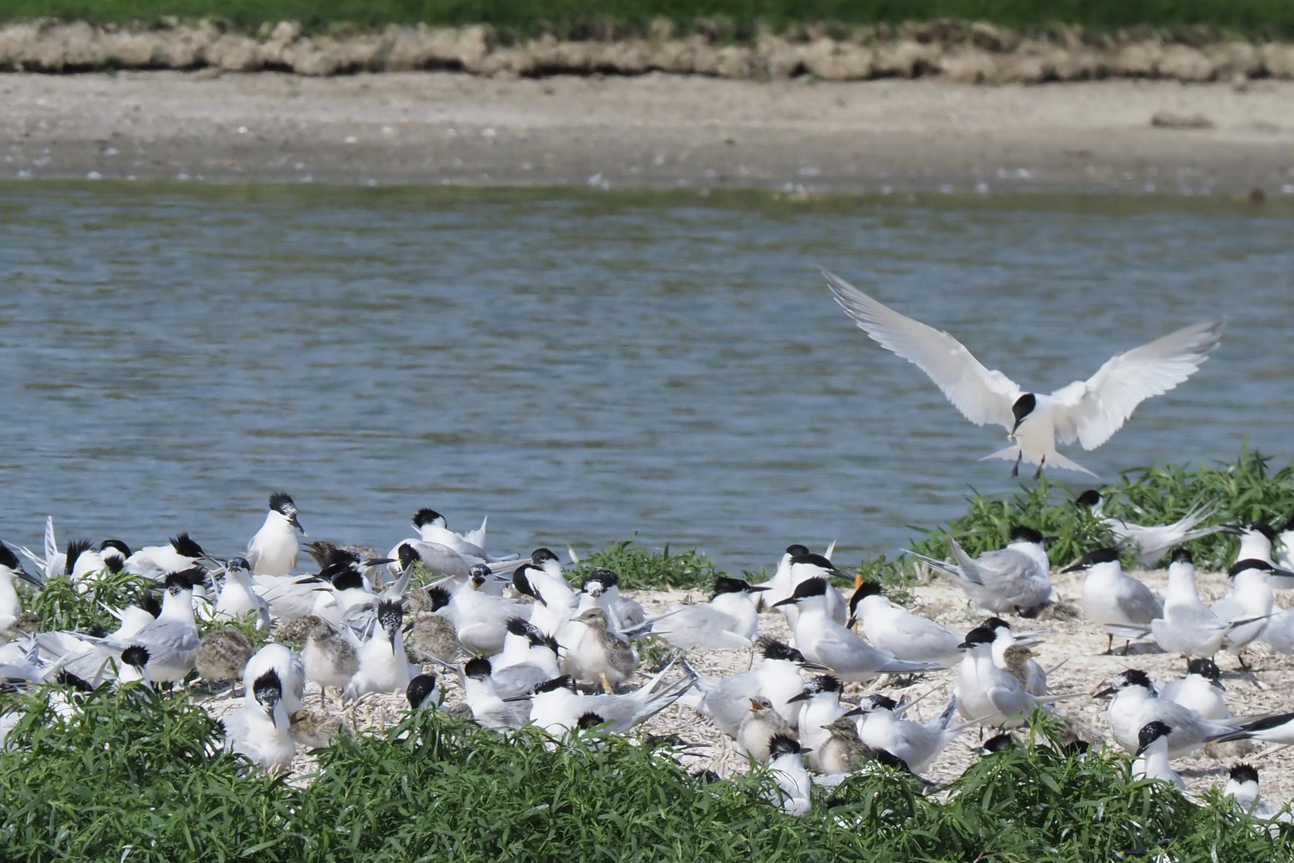 Deze kolonie ligt vlak langs de weg. De vogels wanen zich veilig op het eilandje waar de kolonie zich bevindt. Ze laten zich makkelijk benaderen en fotograferen. Dicht op elkaar, alsof het een populair strand bij 30 graden is. De opname laat een stukje zien van 10 vierkante meter met 50 nesten. Vaak gemengd met een kolonie kok- of zwartkopmeeuwen als extra bescherming tegen roofdieren zoals vossen of roofvogels.