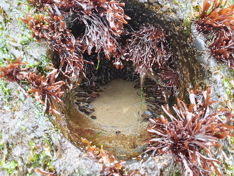 Ergens in een hol in de betonnen blokken die als bescherming dienen tegen de oprukkende zee.
