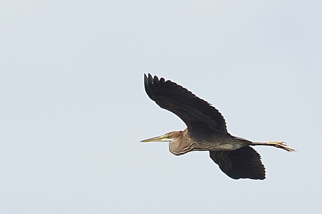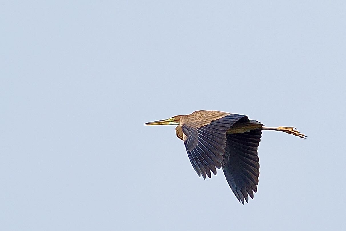 Een trouwe bezoeker van onze site, mevrouw W. K. te N.d.B, nodigde ons onlangs uit voor een bezoek aan het Naardermeer om het gat in onze reiger-beleving te dichten. En zo geschiedde. Een prachtige tocht met een fluisterboot bracht ons tot in het ongerepte centrum van Nederlands eerste beschermde natuurgebied waar we tientallen Purperreigers hebben kunnen waarnemen. Kenmerkend onderscheid in de vlucht: de donkere kleur, nadrukkelijkere S- bocht van de nek en de poten met opvallend lange, gespreide tenen.