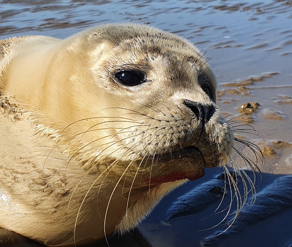 Deze snor zit zeker goed en konden we van dichtbij op de foto zetten omdat we deze zeehond hebben vrij gelaten op het strand van Rockanje.