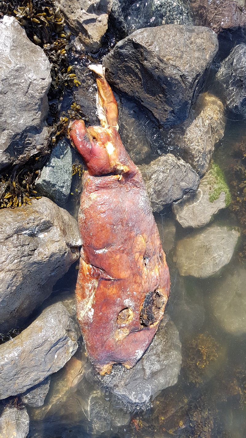 Hij had een dode zeehond zien liggen aan de oever van de Antarcticaweg.