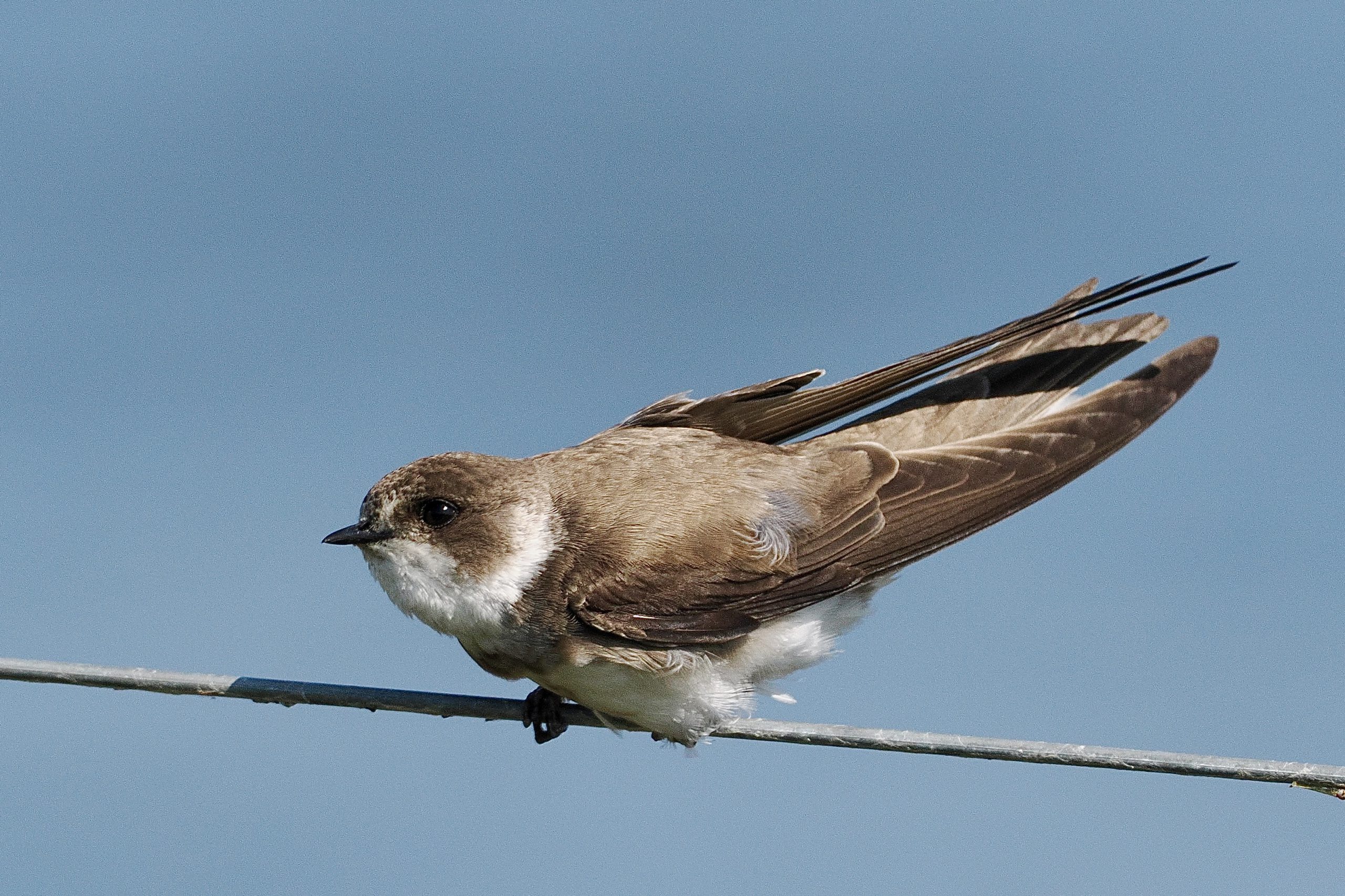 Op een lijntje even verderop keek een aantal overzwaluwen nieuwsgierig om zich heen. De volwassen exemplaren vlogen snel op, de jonge bleven rustig zitten, nog onbevangen en niet mensenschuw.