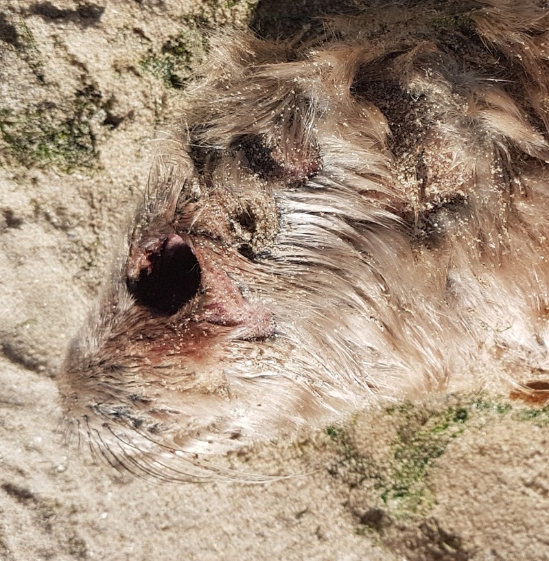 Het dier was nog niet zo lang geleden overleden, maar de meeuwen hadden het kadaver al opgemerkt.