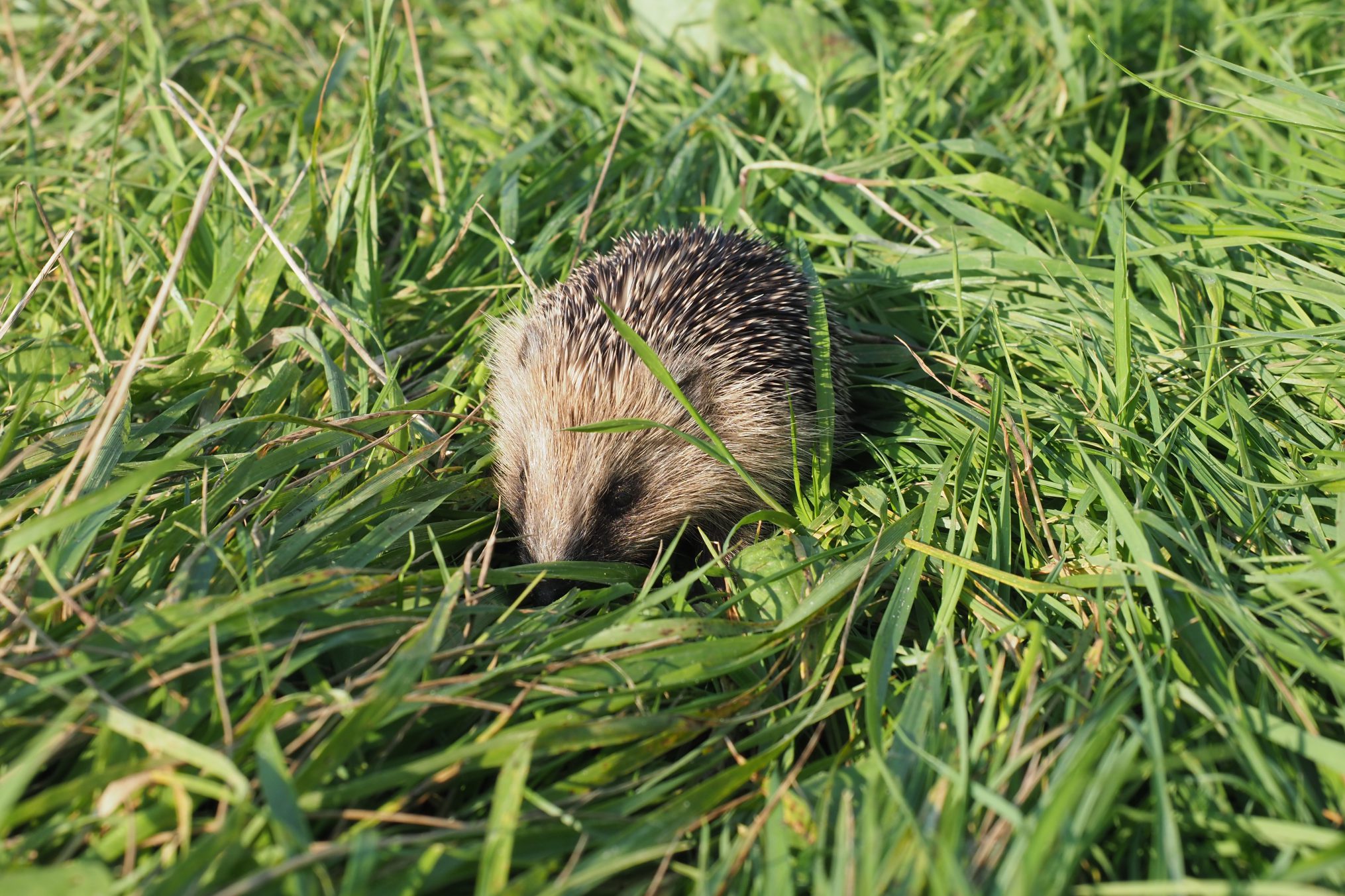 Ja, dit is een jonge egel en nee, hij ligt niet op het zand. Maar voor wie de situatie ter plaatse van restaurant “Aan Zee” kent weet dat strand, slikken en gorzen hier in elkaar overlopen. Op het gedeelte tegen de duintjes aan waar het strand volledig begroeid is en we eigenlijk van een gors spreken (het stroomt slechts bij springvloed en storm onder) kwam ik dit egeltje tegen. Ogenschijnlijk gezond maar in zijn gedrag weinig alert. Hij rolde zich met moeite op toen ik hem wilde inspecteren op teken op zijn buik. Het gaat momenteel niet zo goed met de egels door ziekten en afname van hun ideale biotopen. Egels kunnen ook veel last hebben van teken die soms met twintig tegelijk op hun buik aanwezig kunnen zijn. Het verwijderen van deze beestjes kan al een snelle verbetering geven. Hier trof ik ze echter niet aan. Het beestje in de schaduw onder een struik bij een klein plasje water gezet. Aan het einde van mijn wandeling nog even gekeken, maar het egeltje was “gevlogen”. Prima!