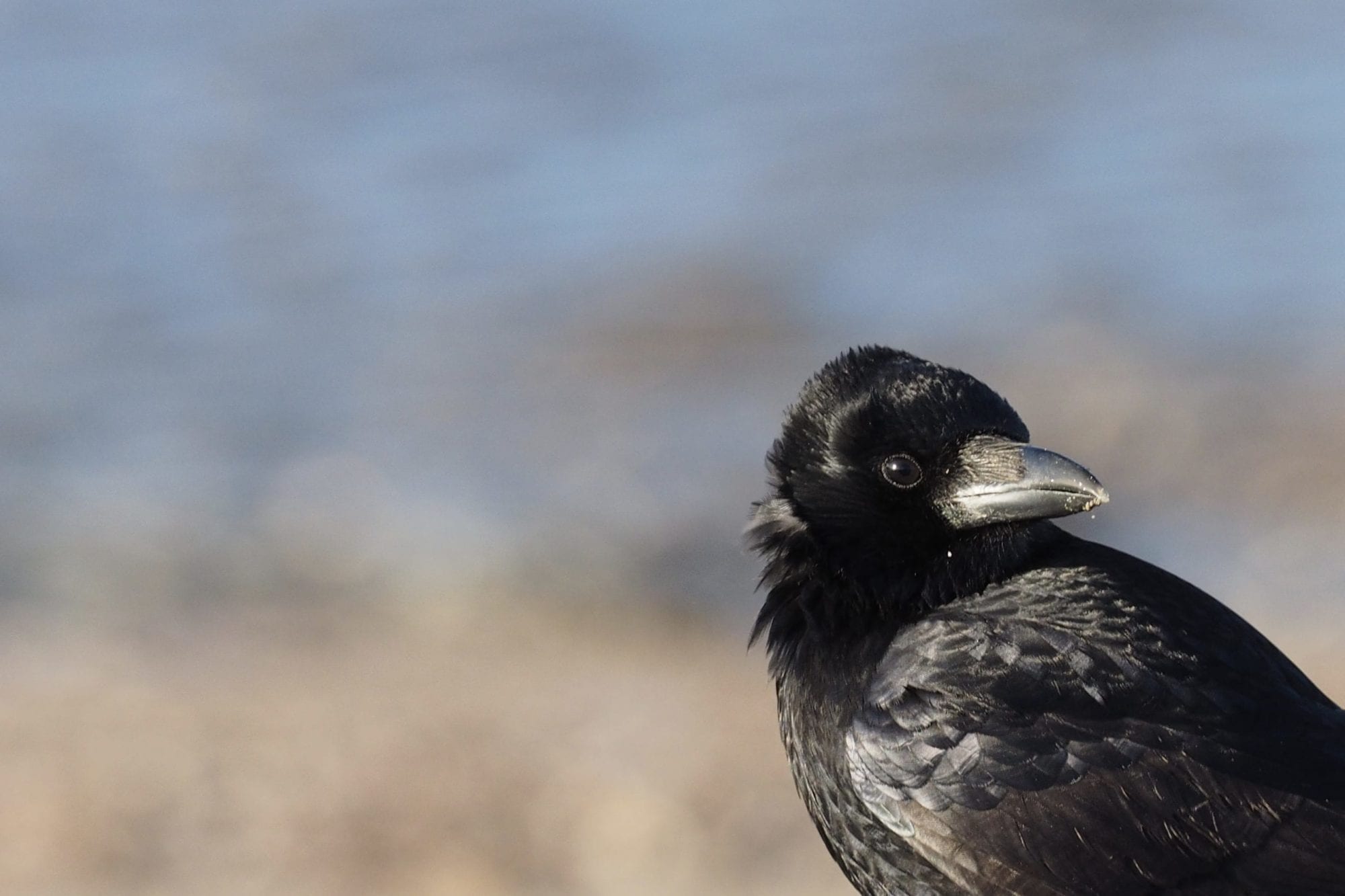 Zomaar een toevallige ontmoeting op het strand,  een zwarte kraai. Niets bijzonders, zeer algemeen voorkomend aan de kust. Maar toch: deze lijkt verbinding te zoeken, het zal wel verbeelding zijn.  Kraaien zijn zeer intelligente vogels die telkens weer blijven verbazen. Wie weet dat hij heeft gedacht “he, een homo sapiens, komt algemeen voor aan de kust” . Maar het zal wel zoiets geweest zijn van “onraad, wegwezen” want kort hierop vertrok hij.  Daarnaast moet vermeld worden dat de afstand tussen ons groot was, opname gemaakt met 16 x tele en vervolgens 2,5 x digitaal vergroot. Rechtvaardigt dus niet zo’n prozaïsche veronderstelling.