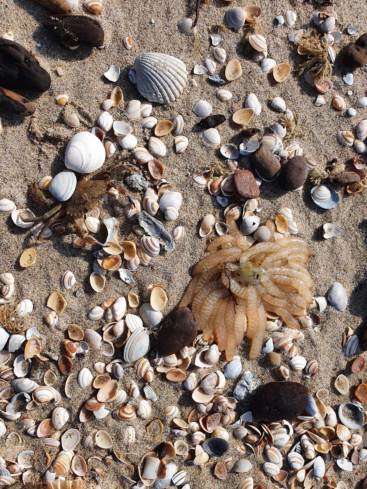 Het eerste wat opvalt op dit stukje vloedlijn is de waaiervormige “kwal”.