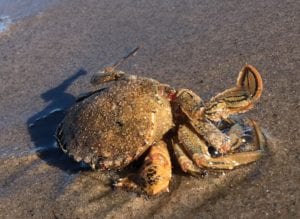 De Fluwelen zwemkrab ziet er exotisch uit en is de grootste zwemkrabbensoort uit onze streek. Zoals haar naam al doet vermoeden heeft dit dier een fluweelachtig uiterlijk. Een groot deel van het pantser wat eigenlijk blauw is, zie je niet door de dichte bruine beharing. Ze lijkt dus aaibaar, maar niets in minder waar. De fluwelen zwemkrab is erg agressief, knijpt hard en neemt een dreighouding aan als je haar verstoort. Deze krabben zijn uitstekende zwemmers, uitgesproken carnivoren en jagen actief op kreeftachtigen, schelpdieren, wormen en vis. Zwemkrabben worden onderscheiden van de andere krabben doordat de laatste twee segmenten van het achterste pootpaar zijn afgeplat tot “peddels”.