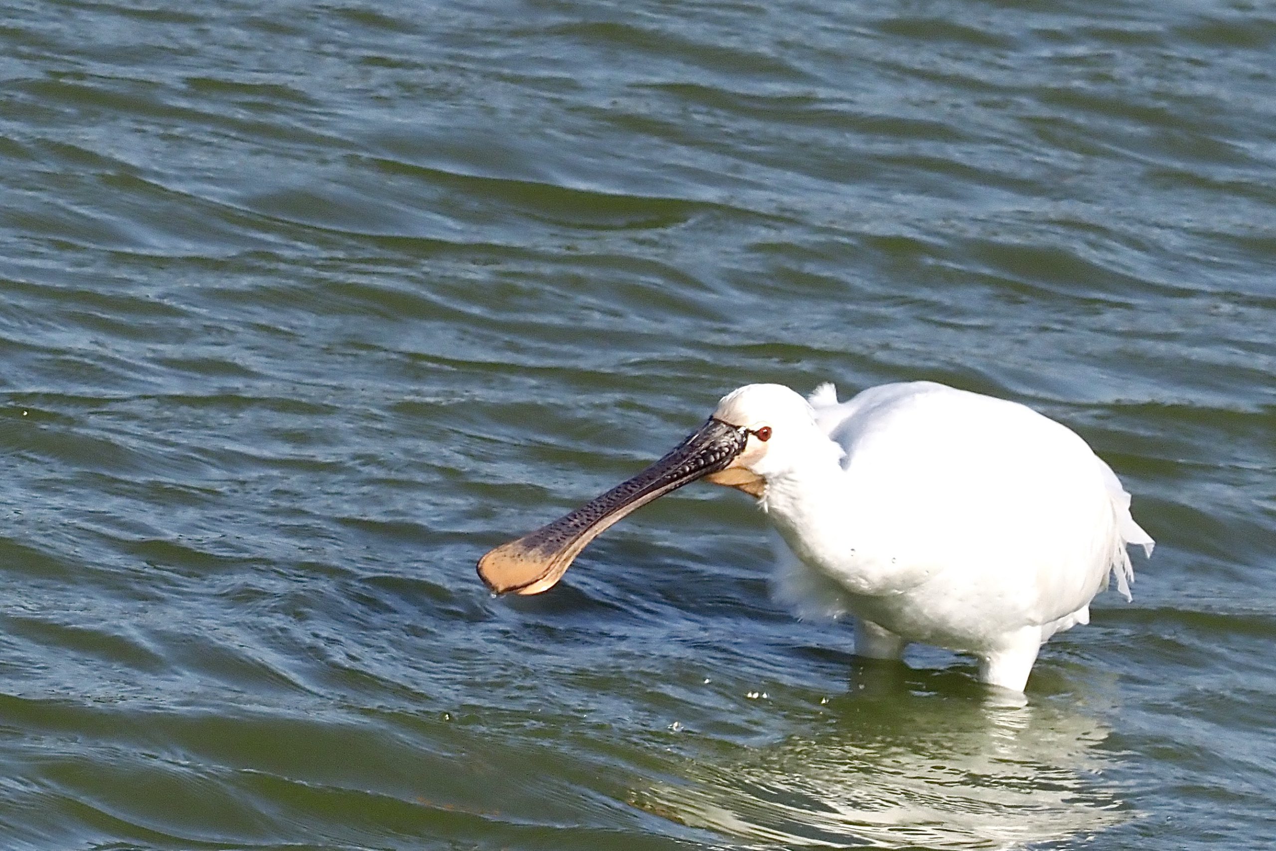De imposante lepel blijft verwonderen. Hoe houd je dat gewicht in de vlucht netjes op zijn plaats, hoe sterk moeten de spieren van het scharnier in de kop niet zijn om de bek te laten klapperen. Het zwaartepunt ligt nogal excentrisch. Maar de praktijk laat zien dat het prima kan.