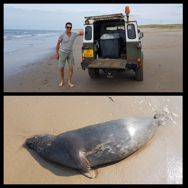 De jonge man, grijze zeehond gaat vanmiddag nog op transport voor onderzoek.