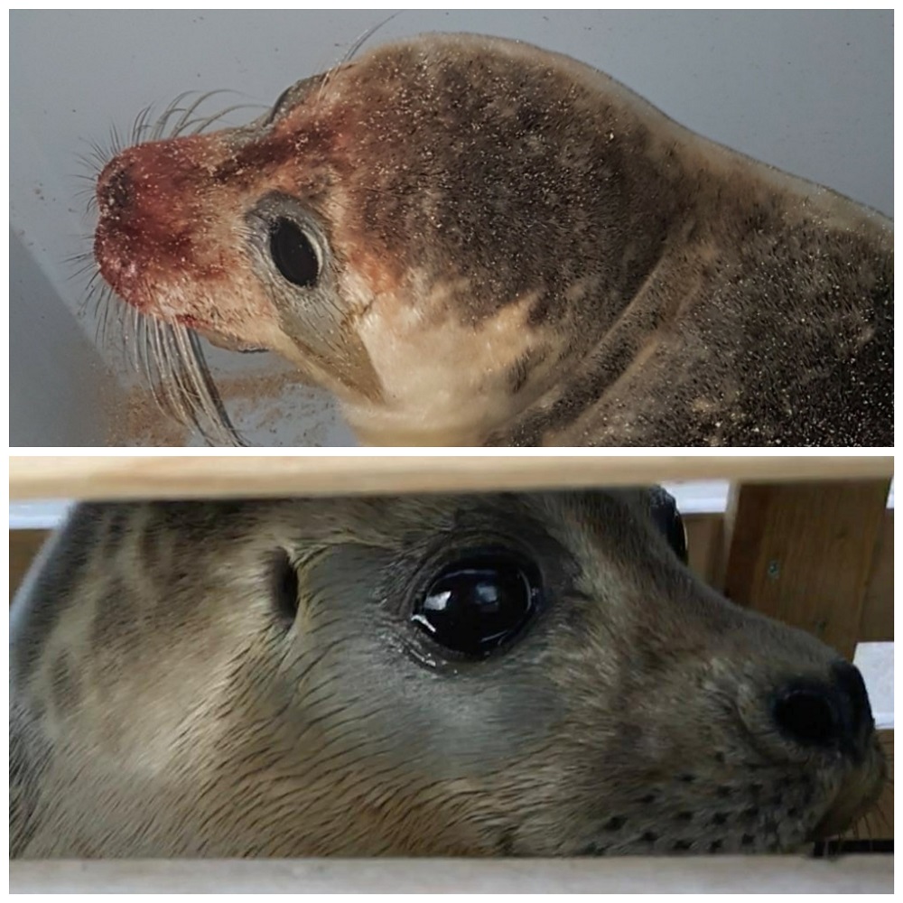 Het onfortuinlijke dier zat toen onder het bloed en bleek ernstig verzwakt. (bovenste foto)