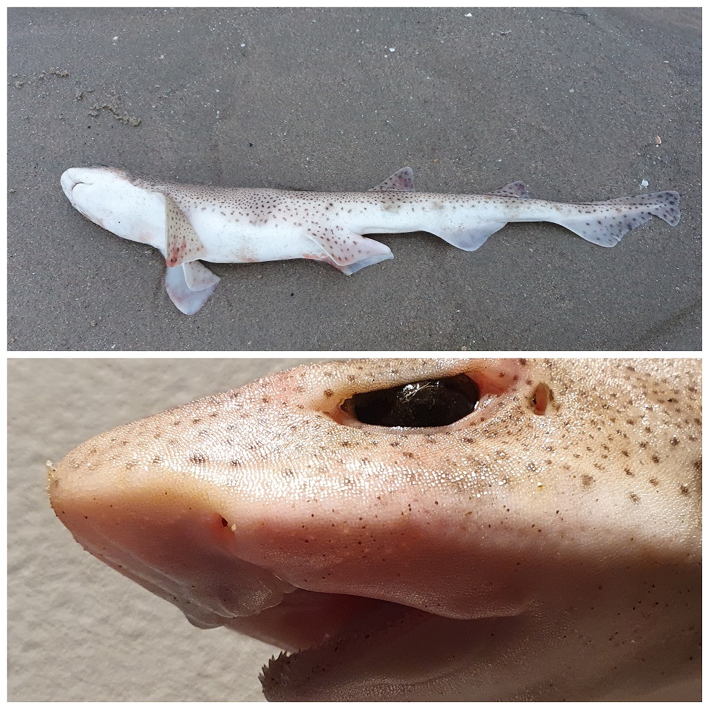 Tijdens een observatie van een jonge grijze zeehond op de #Maasvlakte stuitten we op een nog vers kadaver van een kleine haai.