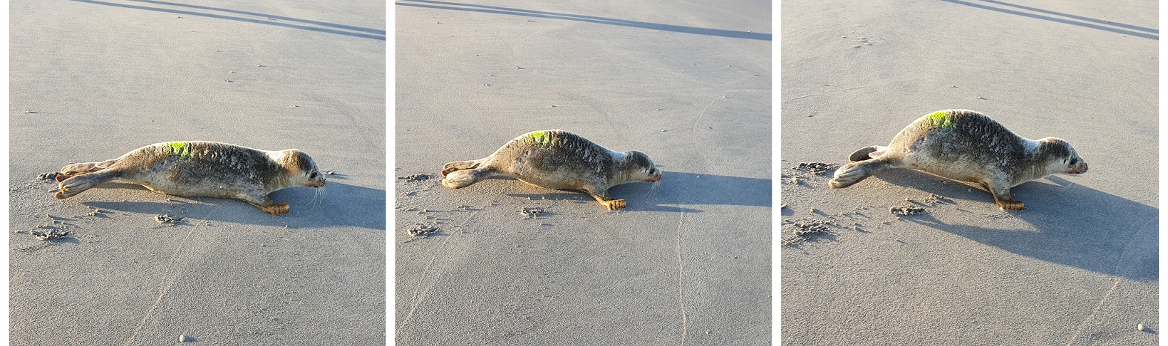 Deze foto’s zijn genomen nadat deze jonge zeehond een kleurmerk had gekregen.