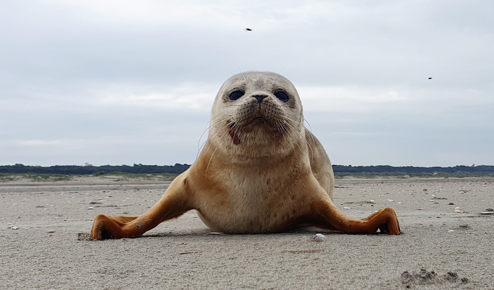 De volgende dag bleek deze gewone zeehond weer zelfstandig naar zee te zijn gebobbert.