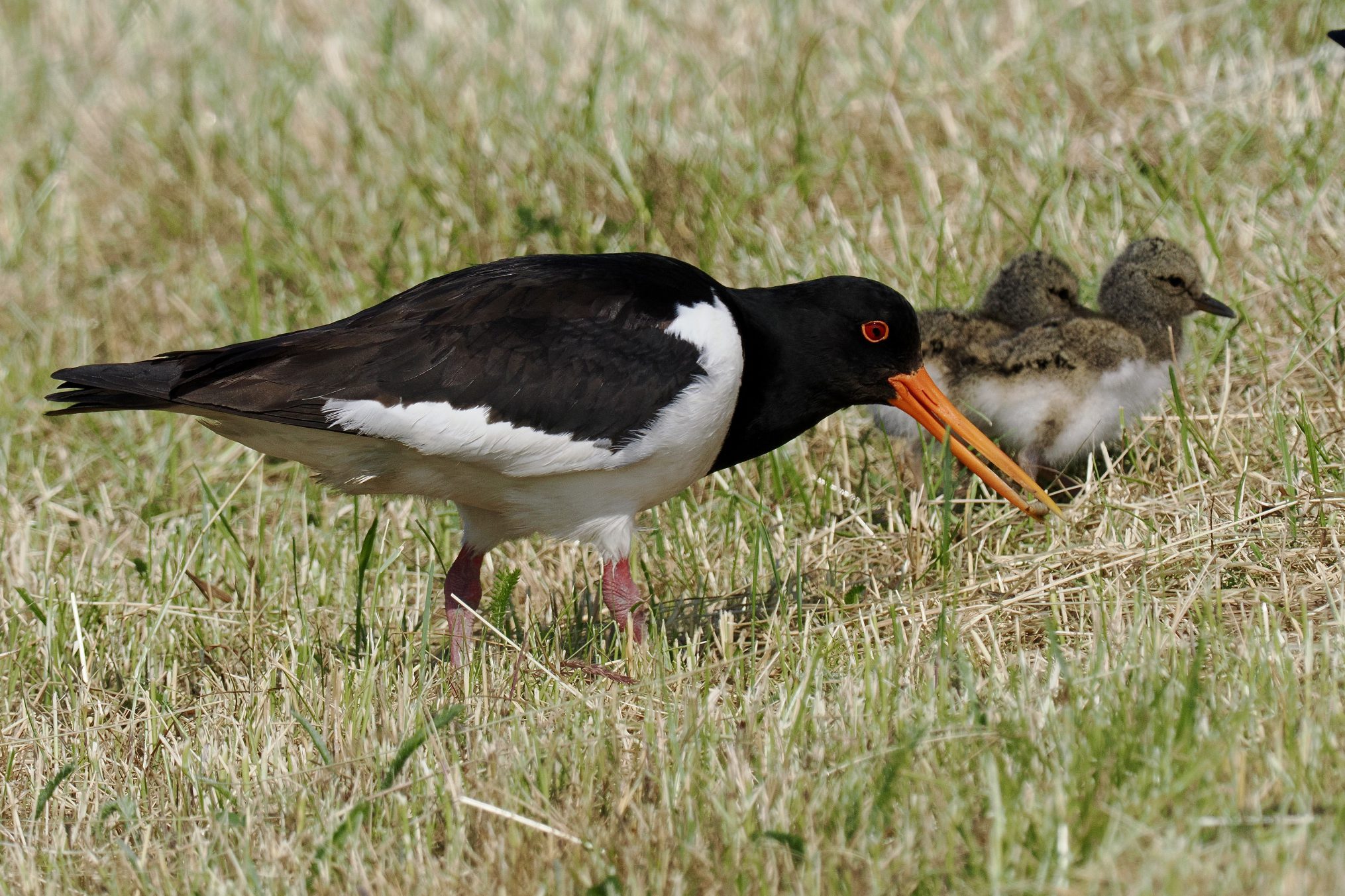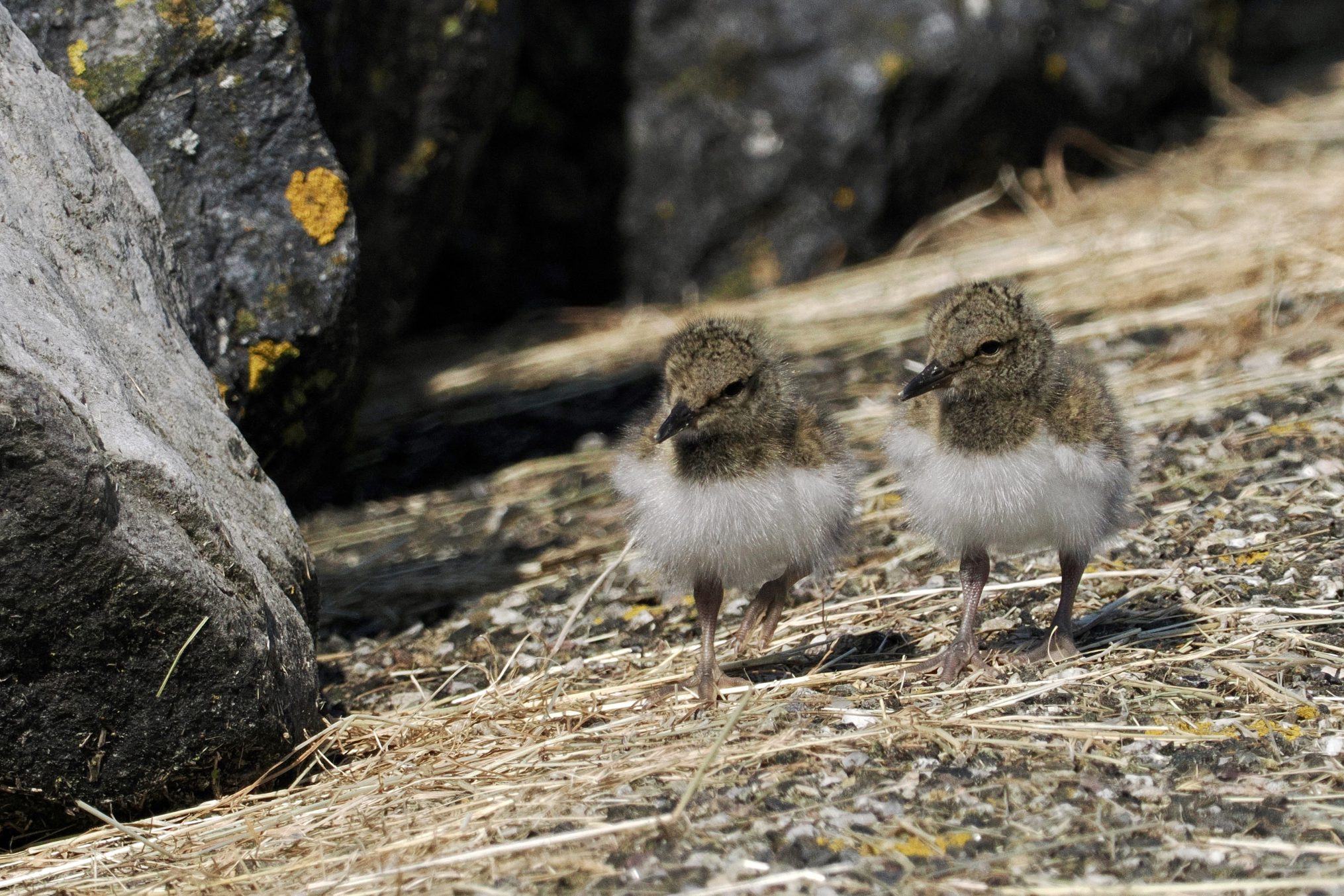 Als een Siamese tweeling lopen twee jonge Scholeksters langs het fietspad nabij het Wad. Dagelijks kwamen we ze hier tegen. Begeleid door pa en ma staken ze het pad over van wad naar zeedijk en andersom, afhankelijk van de waterstand. Het ouderpaar deinsde er niet voor terug om met hun nadrukkelijke aanwezigheid fietsers tegen te houden. Zo leerden de jongen spelenderwijze het voedsel van het Wad waarderen zoals pieren, krabbetjes, garnaaltjes om even later te wennen aan wormen en emelten uit de grasdijk. In het voorjaar en de zomer tref je Scholeksters aan als kust- of weidevogel, in najaar en winter bivakkeren ze allen aan de kust van de Delta of het Wad. Deze jonge Scholeksters van Schiermonnikoog leren al vroeg van twee walletjes te eten.