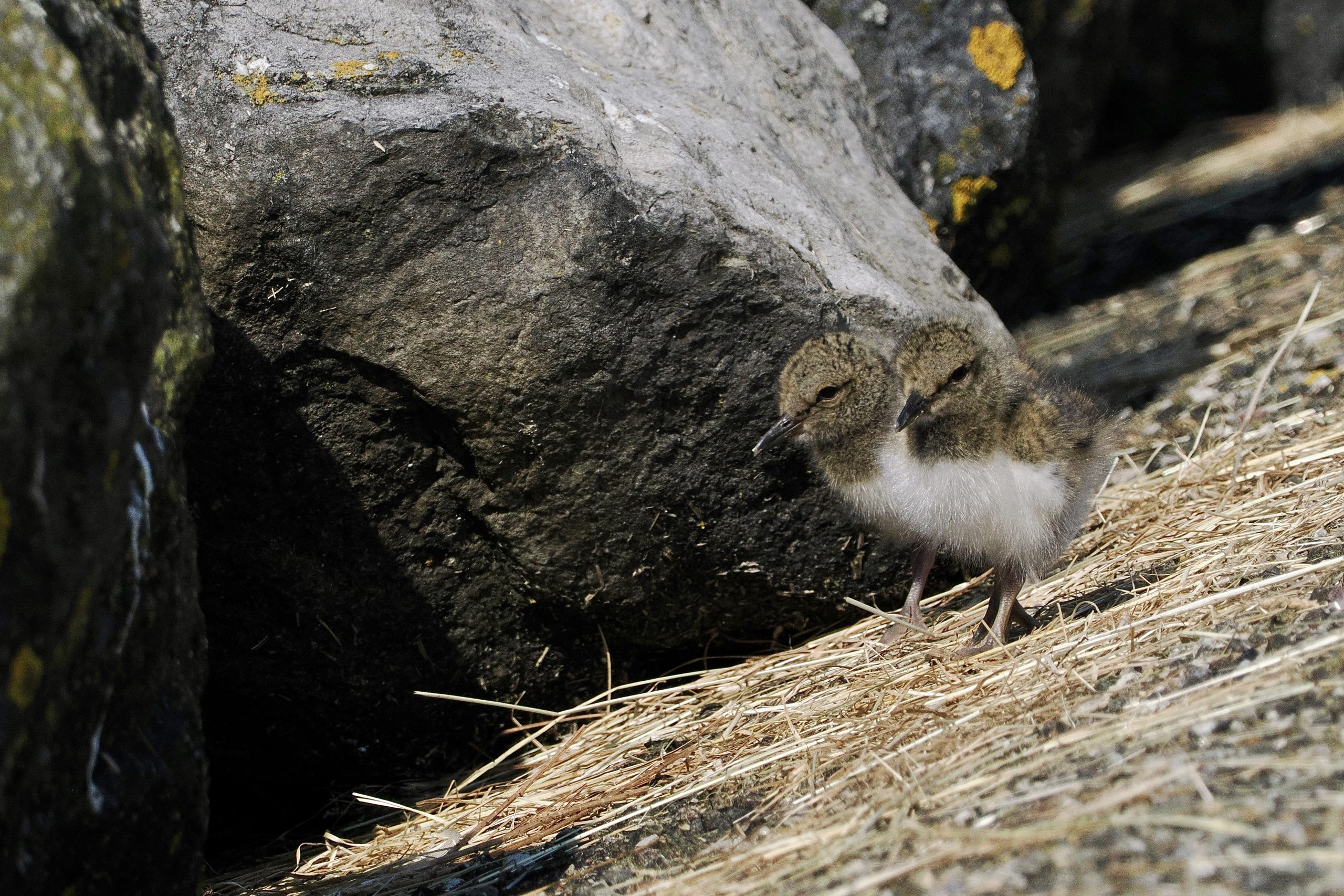Als een Siamese tweeling lopen twee jonge Scholeksters langs het fietspad nabij het Wad. Dagelijks kwamen we ze hier tegen. Begeleid door pa en ma staken ze het pad over van wad naar zeedijk en andersom, afhankelijk van de waterstand. Het ouderpaar deinsde er niet voor terug om met hun nadrukkelijke aanwezigheid fietsers tegen te houden. Zo leerden de jongen spelenderwijze het voedsel van het Wad waarderen zoals pieren, krabbetjes, garnaaltjes om even later te wennen aan wormen en emelten uit de grasdijk. In het voorjaar en de zomer tref je Scholeksters aan als kust- of weidevogel, in najaar en winter bivakkeren ze allen aan de kust van de Delta of het Wad. Deze jonge Scholeksters van Schiermonnikoog leren al vroeg van twee walletjes te eten.