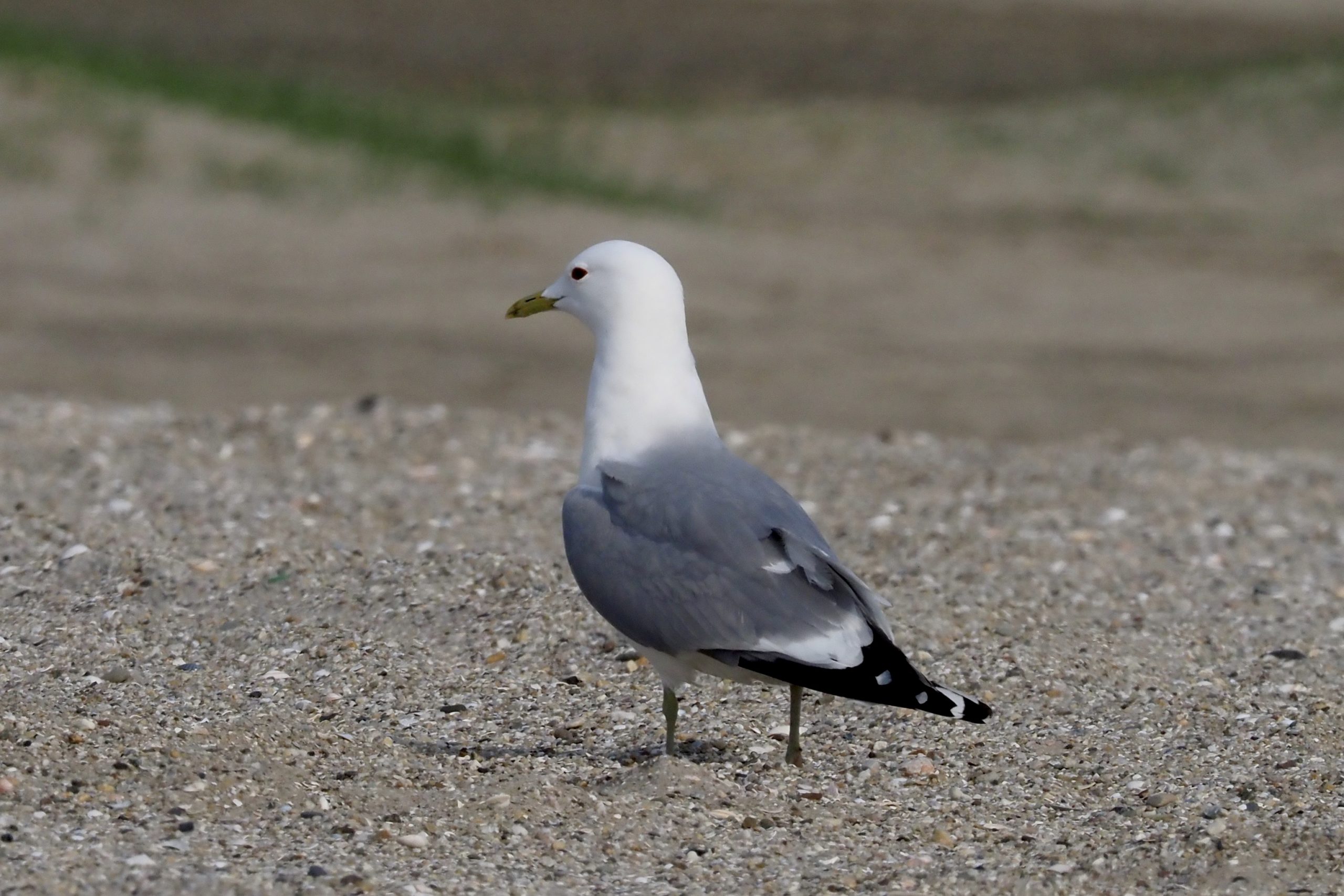 Tegen de avond, op de weg terug van een lange vergeefse zoektocht naar strandplevieren bij de Groene Punt kwam ik op het oude Autostrand deze meeuwen tegen. Te gewoon om de verrekijker op te richten liet ik ze voor wat het was: een koppeltje zilvermeeuwen. De gracieuze vorm en het vriendelijke hoofd maakten me aan het twijfelen: het bleek om stormmeeuwen te gaan. In de winter een zeer algemene vogel, bekend van het strand maar ook van het akkerland ( achter de ploegende boer). In de zomer broedend aan de kust met een bescheiden aantal van 3500 paren, voornamelijk in Noord-Nederland.
