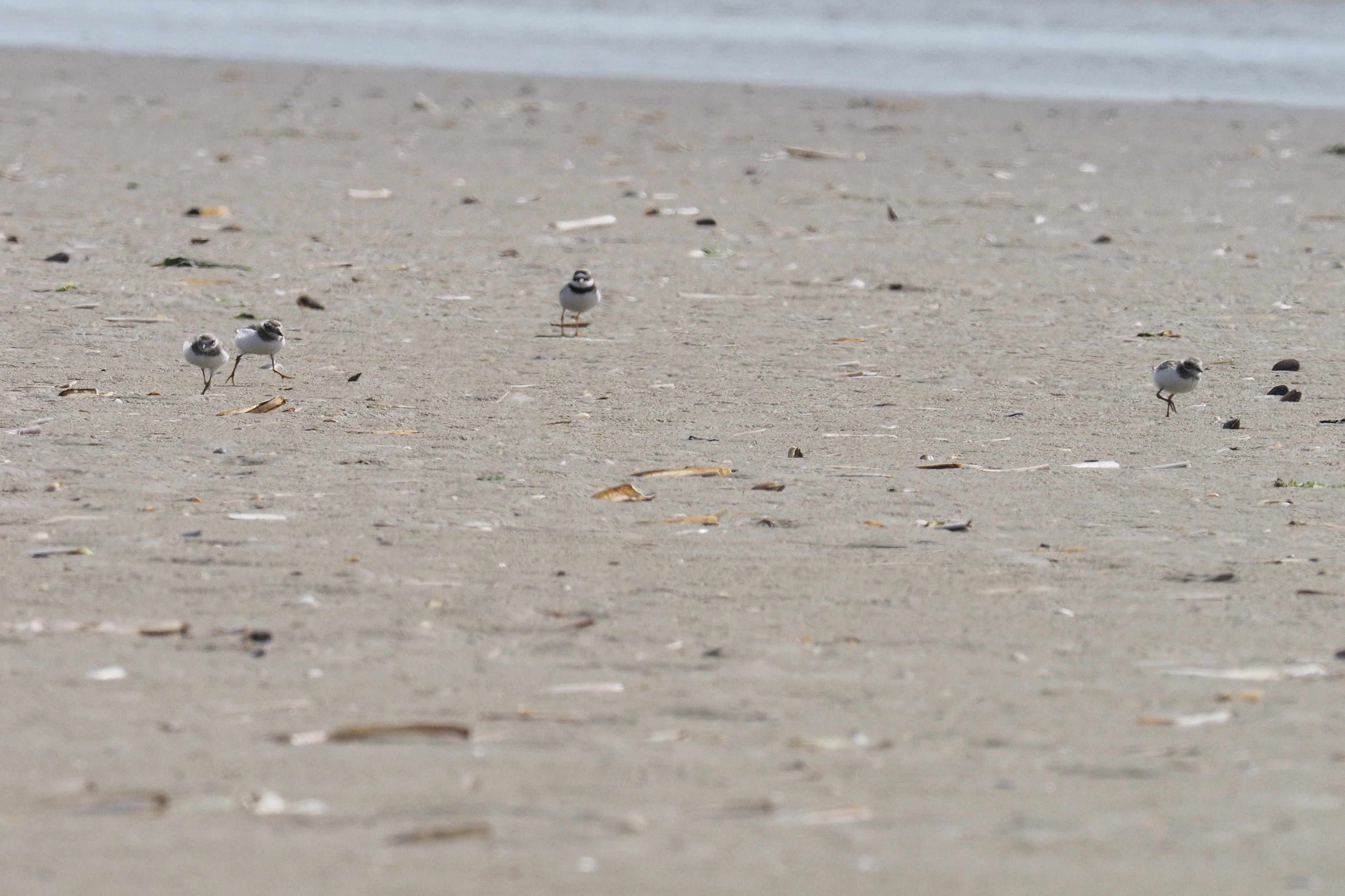 Het broedseizoen is voorbij, de afsluiting van een groot deel van het strand van de Kwade Hoek voor wandelaars is per 16 juli beëindigd. Vanmorgen echter kreeg ik nog een tweede leg van de Bontbekplevier in de kijker, onopvallend op het kale strand tussen de schelpen. 3 jongen en een zeer waakzame ouder. Aandachtig werd ik in de gaten gehouden, zij en ik bewogen minuten lang niet. Uiteindelijk verloren zij de “waiting game” en gingen weer door met foerageren. Te ver voor een opname. Maar dan wordt ik “geholpen” door een loslopende hond die ze naar mij opjaagt, uiteindelijk zal de ouder gaan vliegen en de jongen de wegwijzen die wel hard kunnen lopen maar nog niet vliegvlug zijn. Een paar minuten later keert de rust weer terug. 3 mooi jongen, niet slecht!