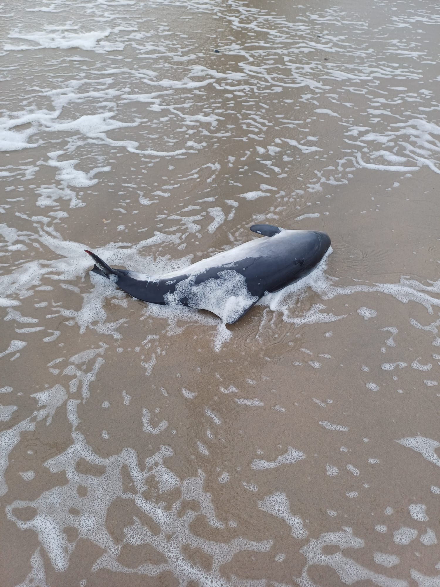 Afgelopen vrijdag werden we gebeld voor een melding van een levend aangespoelde bruinvis op het Maasvlaktestrand.