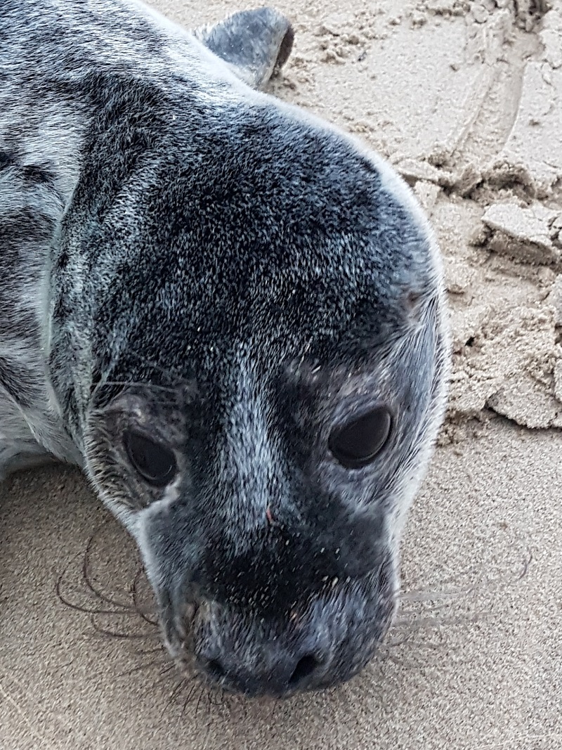 Eenmaal ter plaatse zagen we een jonge grijze zeehond die inderdaad een vermoeide indruk maakte.