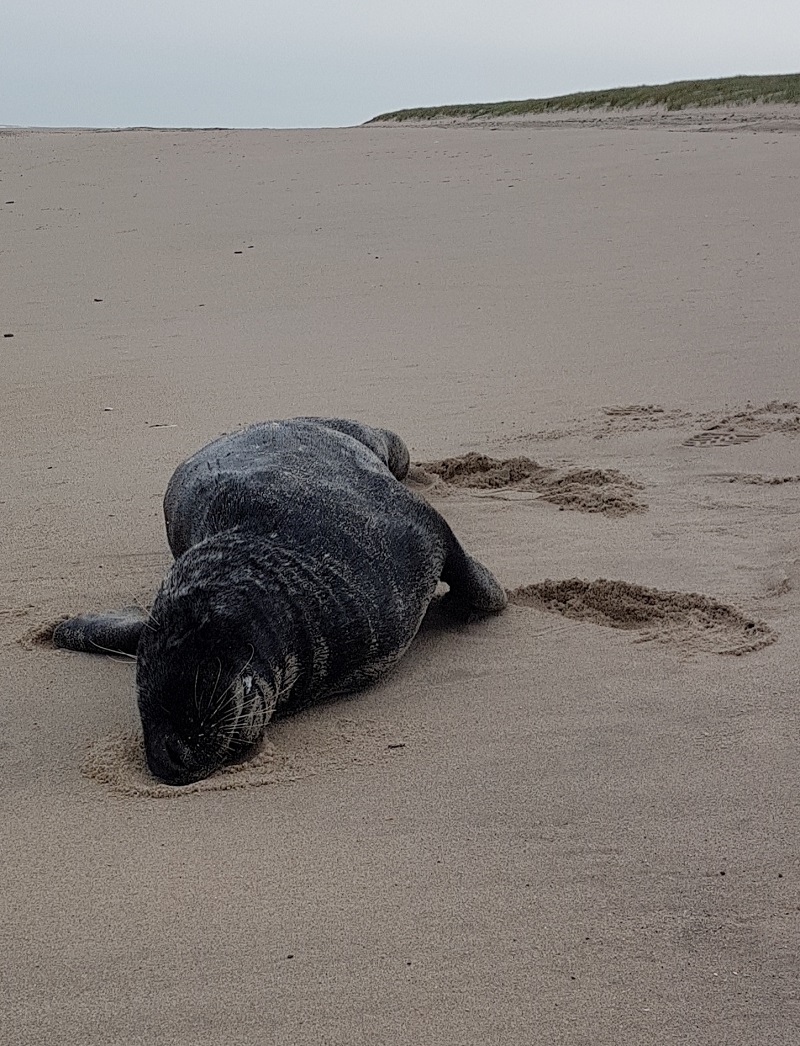Een Shovel machinist die op het strand aan het werk was ontdekte de zeehond op de vloedlijn.