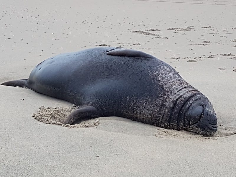 Een volwassen man, Kegel rob was gestrand bij Renesse.