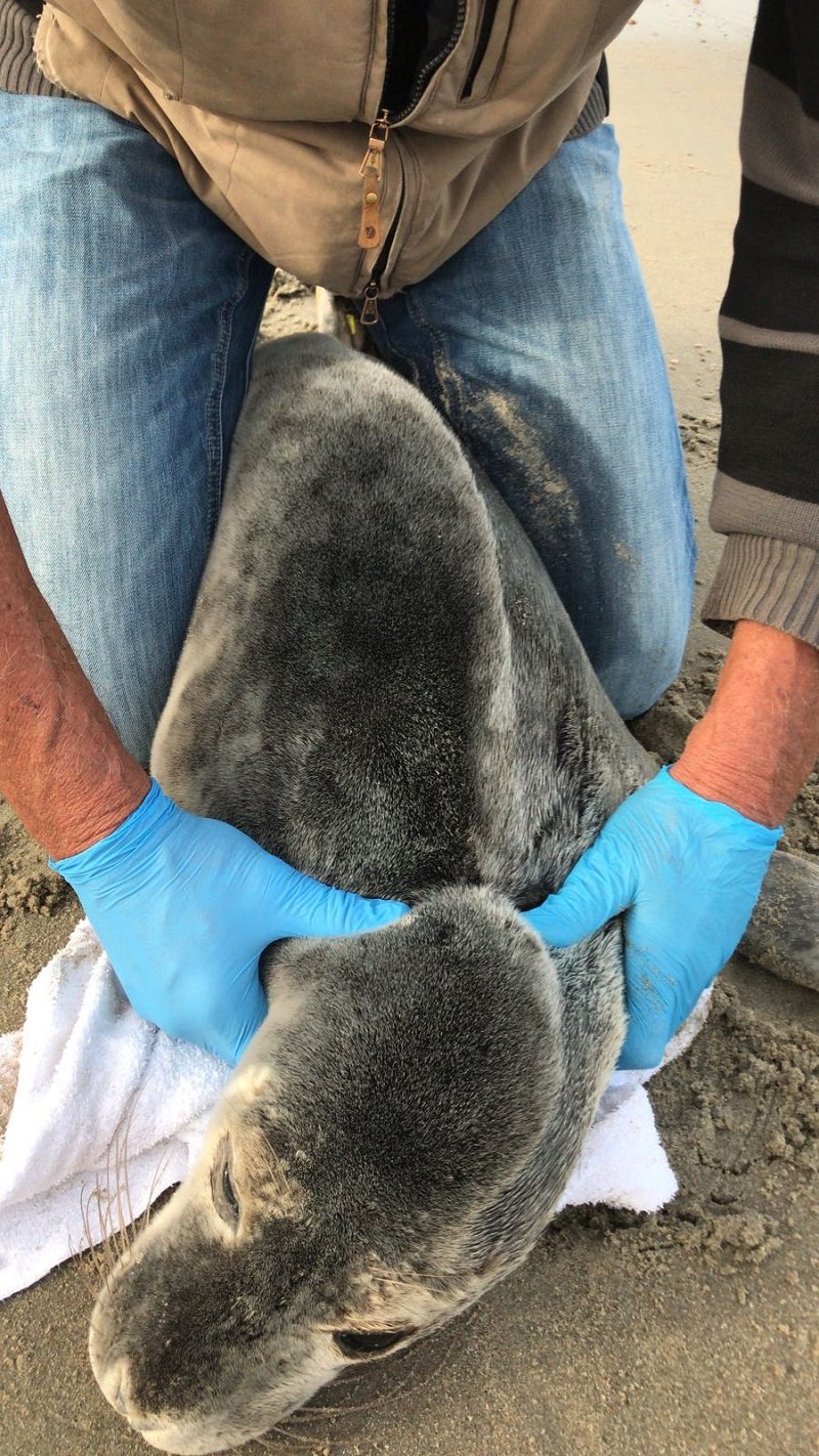 Tegen de avond, op 7 april, kregen we een melding over gestrande zeehond op strand Ouddorp.