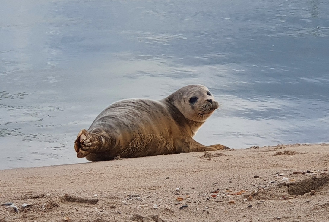 Een jonge zeehond op het strand is niet eenzaam en zielig, maar bevindt zich gewoon in zijn natuurlijke habitat.