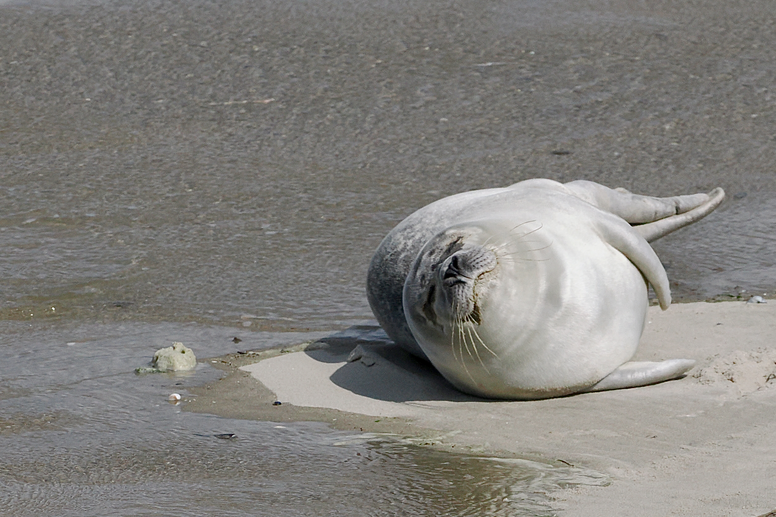 Deze nog jonge, gewone zeehond lag te rusten op het strand van de Maasvlakte. De spaarzame wandelaars hielden flink afstand en de honden hield men netjes aan de lijn. Op deze manier konden de wandelaars [...]