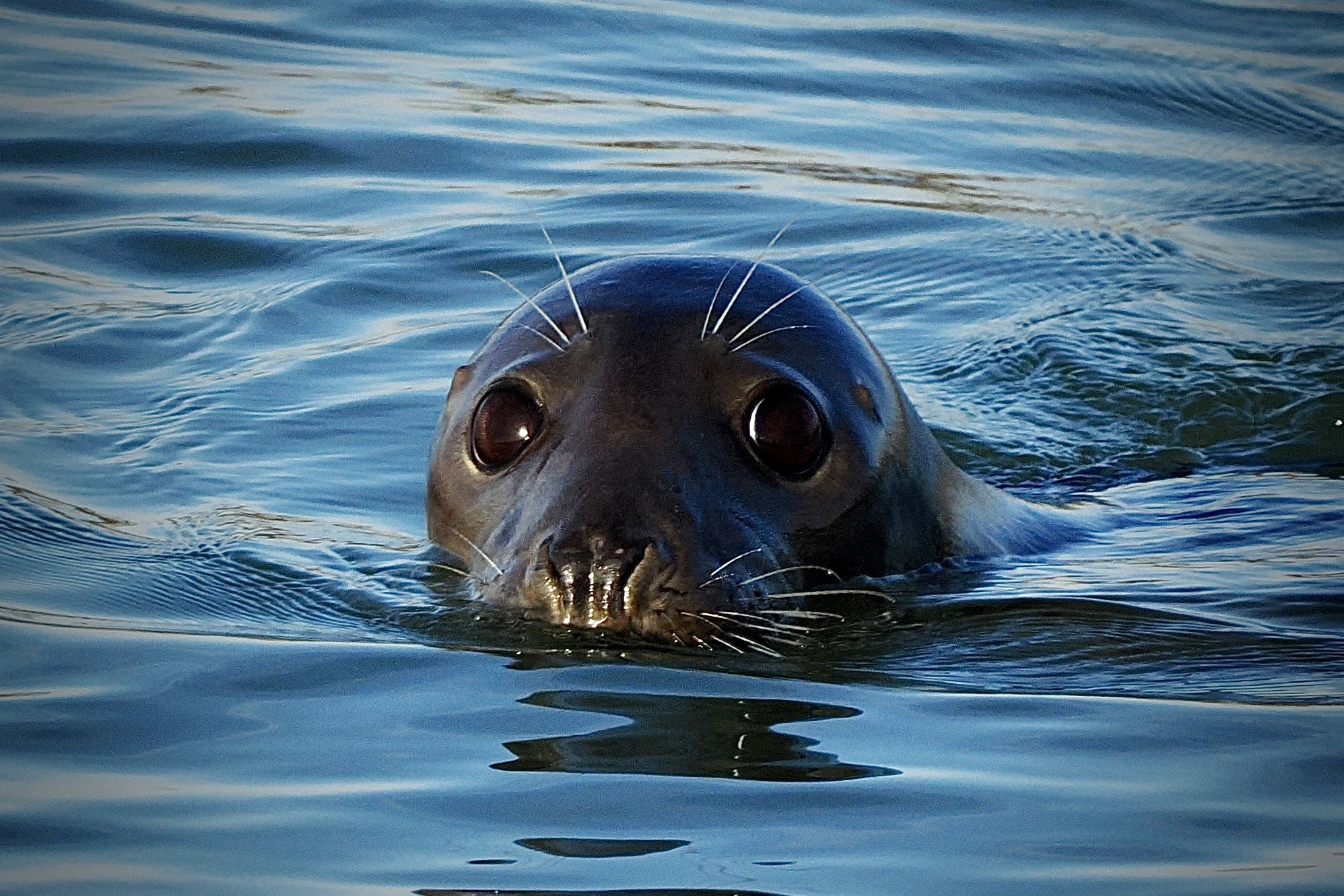 Gladde kop, geen uitsteeksel behalve wat snorharen. Een oorschelp ontbreekt, slechts een klein gaatje verraadt een gehooringang, alles voor een goede stroomlijn. Ondanks dit kunnen zeehonden goed horen, zelfs met een groter bereik dan mensen. [...]