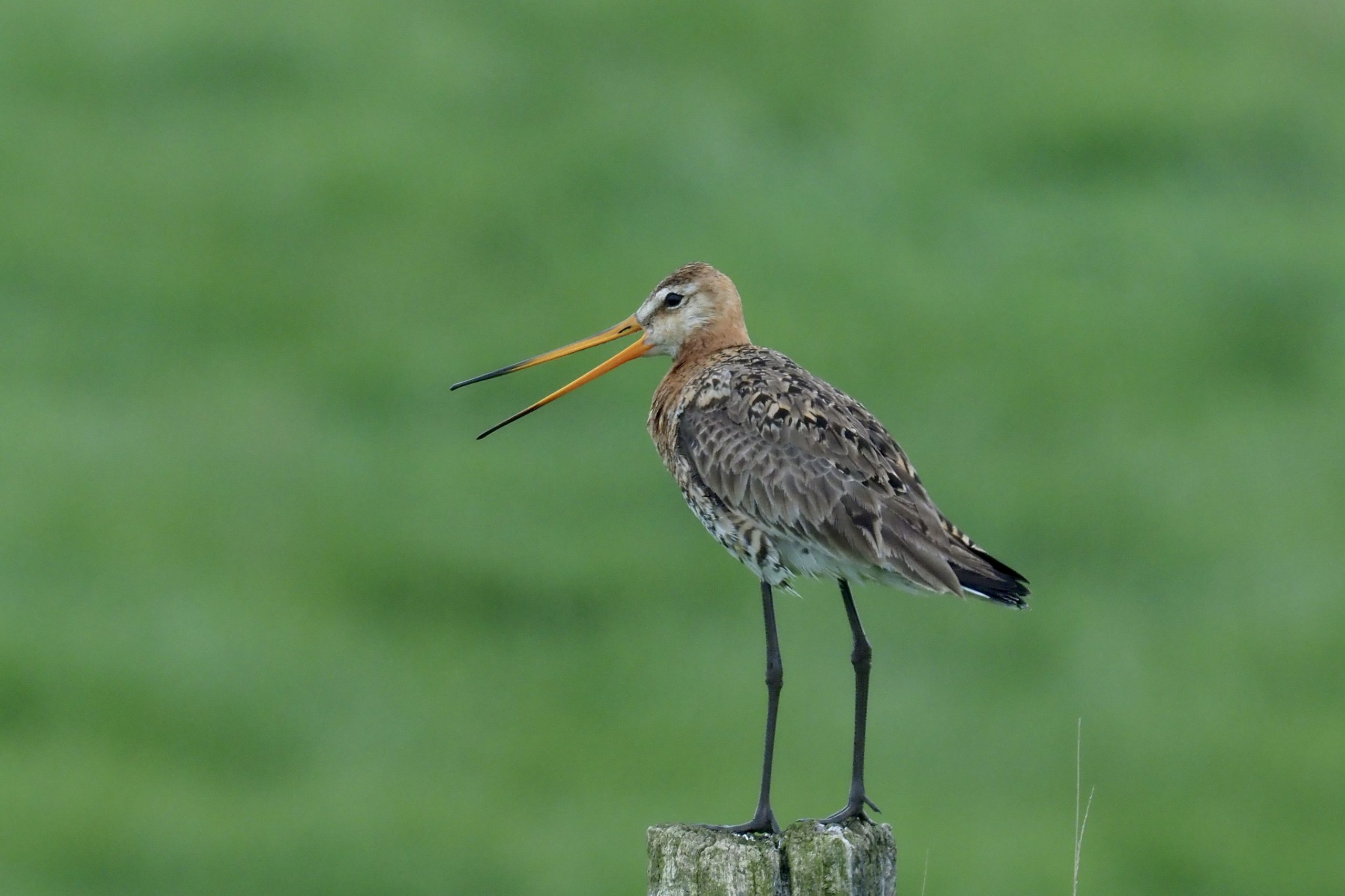 Grutto’s op een paaltje. In het voorjaar staan ze steevast zo afgebeeld op de voorpagina van natuurtijdschriften. Een bijzonderheid als je in een laag-intensief broedgebied voor deze vogels woont, zoals Voorne. Grutto’s genoeg, maar buiten het broedseizoen en niet in deze houding. De wens om nog eens een keer zo’n prentje te maken, werd hier binnen een half uur ingewilligd.