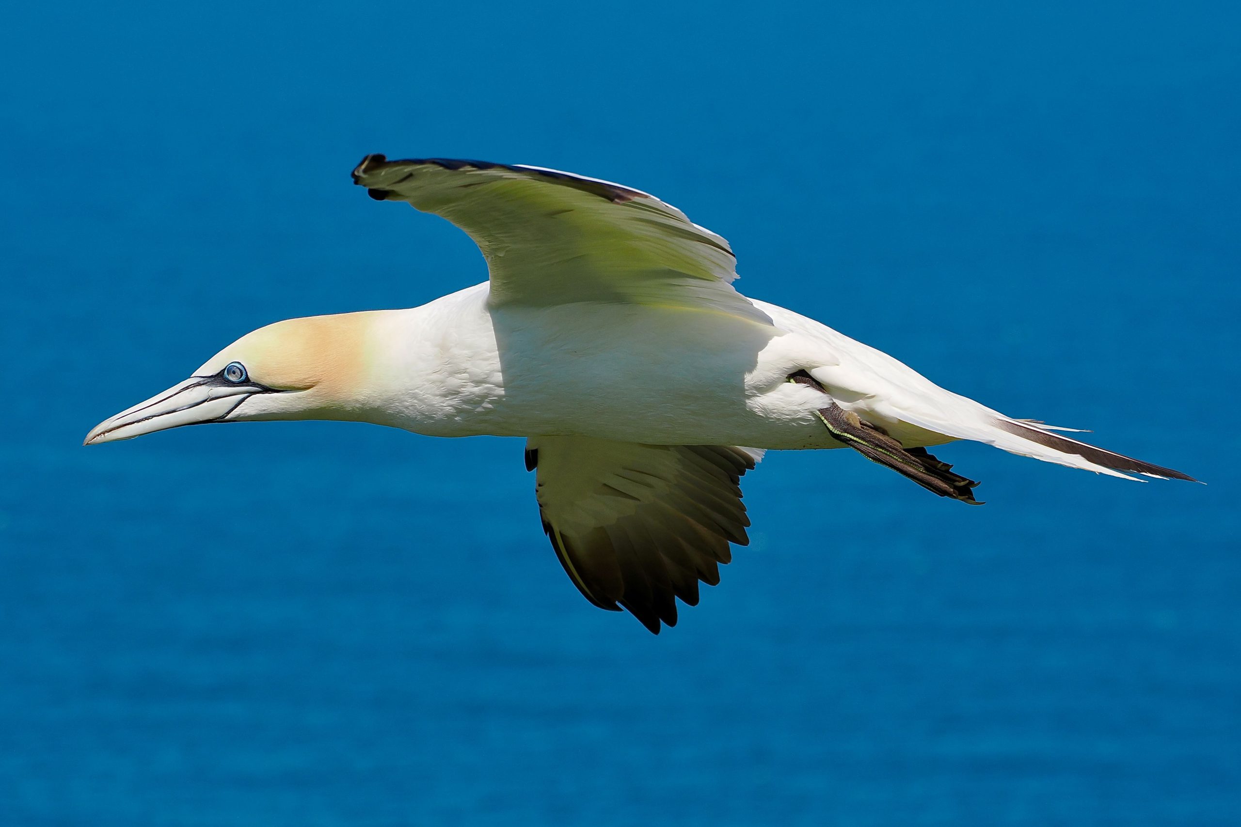 Het aardige van Bempton Cliffs is dat je op gelijke hoogte staat met de vliegende Jan-van-genten. Naar schatting zo’n honderd meter boven de zee loopt een wandelpad met een houten hek. Daarachter de vrijwel loodrechte rotswand die boven de zee uittorent. Juist daar is het domein van duizenden Jan-van-genten. Gezeten op de richels richten ze hun nesten in voor het naderende broedseizoen.
