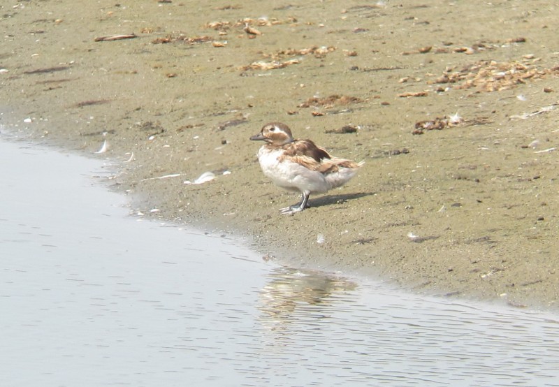 Dit vrouwtje IJseend heeft echter besloten om in de voormalige vogelvallei op de maasvlakte, de zomer over te blijven.