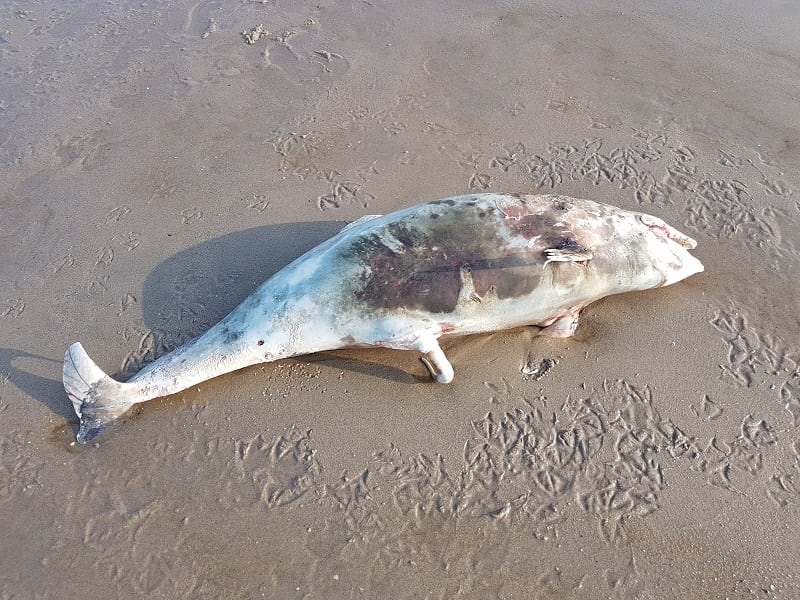 Vanuit zijn vakantieadres heeft onze secretaris Huib, ons vanavond weer een gestrande, dode bruinvis doen bekomen.
