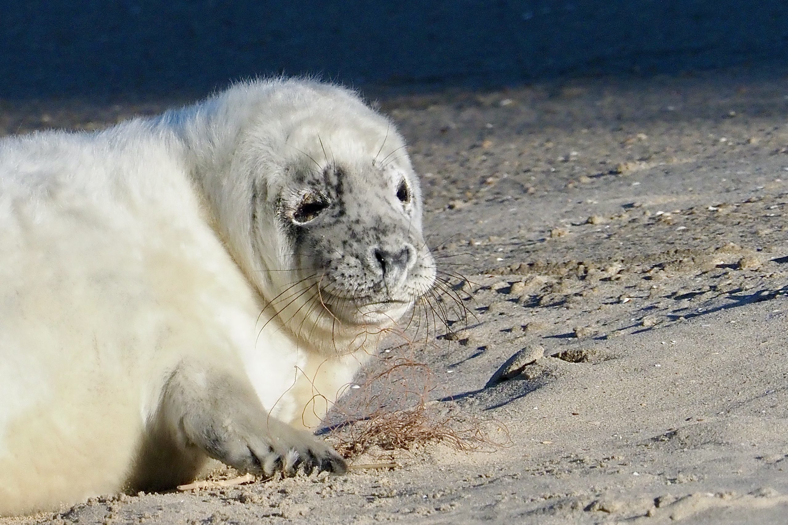 Onderaan de sleepnetten van de vissersboten bieden slierten van deze nylon draden bescherming tegen slijtage ten gevolge van het schuren over de zeebodem. De oorspronkelijk dikkere bundels van deze vispluis slijten en vallen uiteen tot dunne kunststof draden, rood of blauw gekleurd. Ze gaan een tweede leven lijden als zwerfafval. Veel op het strand te vinden, rond vogelpoten, vleugels en snavels. Deze zeehond zal daar geen last van hebben. Maar op deze manier flossen van zijn tanden moeten we zeker niet willen.