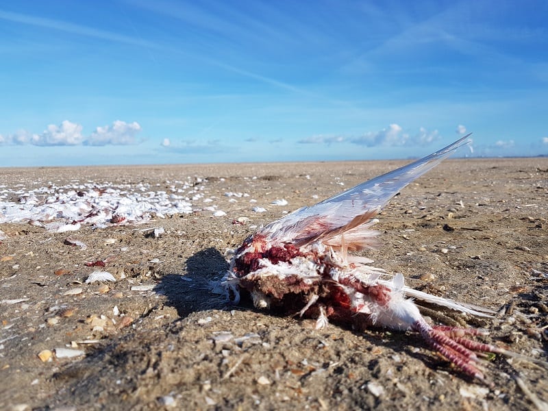 Je komt ze wel vaker tegen, een plek bezaaid met losse veren en restanten van een vogel.