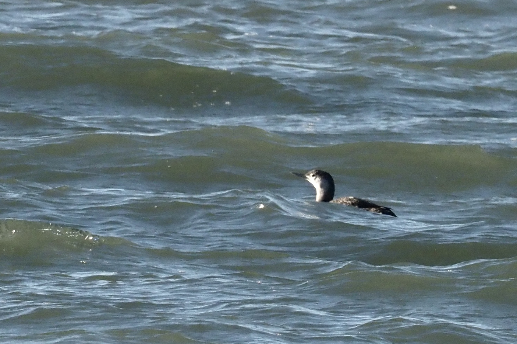 Begin november tijdens een weekje met veel wind troffen we hem aan bij de blokkendam op de Maasvlakte, direct achter de branding. We waren zojuist een zeehonden kadaver aan het bergen en helaas dan sjouw je niet een telelens mee. Daarnaast was het grauw en regenachtig weer. Daags erna terug gegaan en de omgeving verkend of en waar we hem zouden kunnen treffen. Zelfde plek, zelfde afstand, vermoedelijk zelfde duiker maar wederom slechte lichtomstandigheden. Maar er waren opklaringen voorspeld, lang leven buienradar! Een half uur later was het zover, de regen was inmiddels gestopt en de lucht brak. In de luwte van een duin de ideale plek gezocht, de zee afgetuurd en kijken waar hij zich bevond. Het licht werd sterker en het contrast nam toe, de afstand ideaal. De duiker kwam boven, maar verder in zee om met een volgende duik onbereikbaar te worden en te verdwijnen. En dan maar wachten op betere tijden die niet kwamen…..