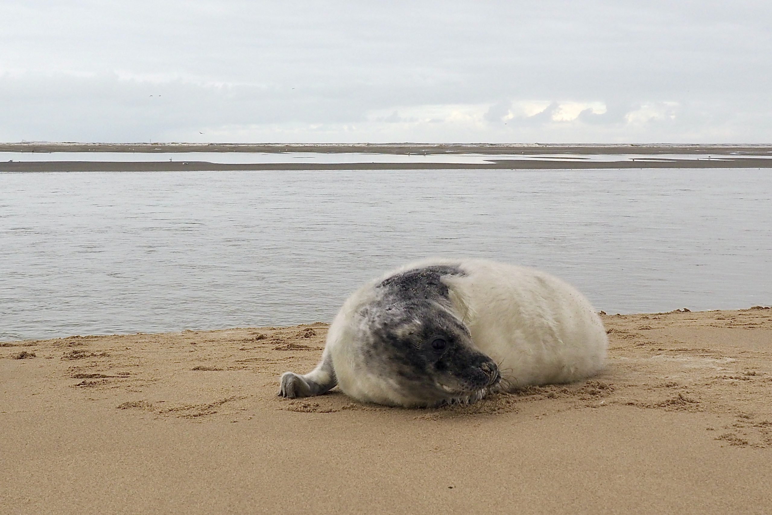 Maar ter plaatse bleek overduidelijk dat het ging om wat te verwachten was: een jong van de Grijze Zeehond. ca 4 weken oud en verharend. Maar wel van een enorme omvang, vol in het vet en van een grootte die ontzag inboezemde.
