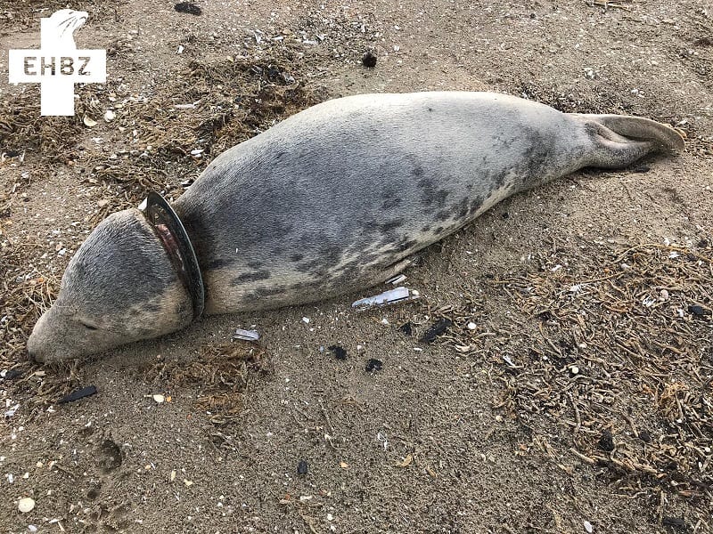 Het ongelukkige dier bleek het slachtoffer geworden van een frisbee, die vast geklemd zat om zijn nek.