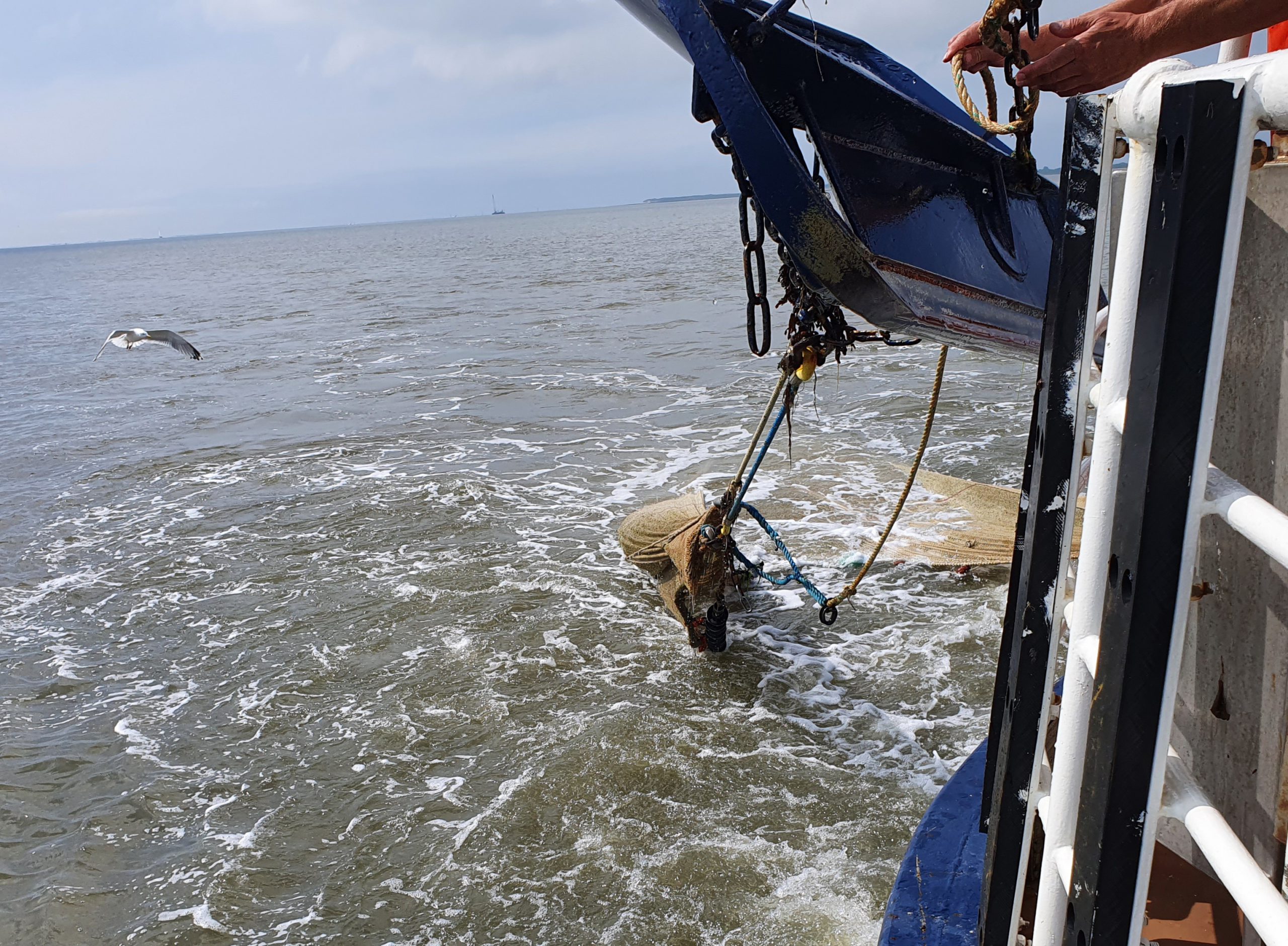 Nu we op de Waddenzee voeren werd er een groot sleepnet overboord gezet en waren we erg benieuwd wat er nu boven water zou komen.