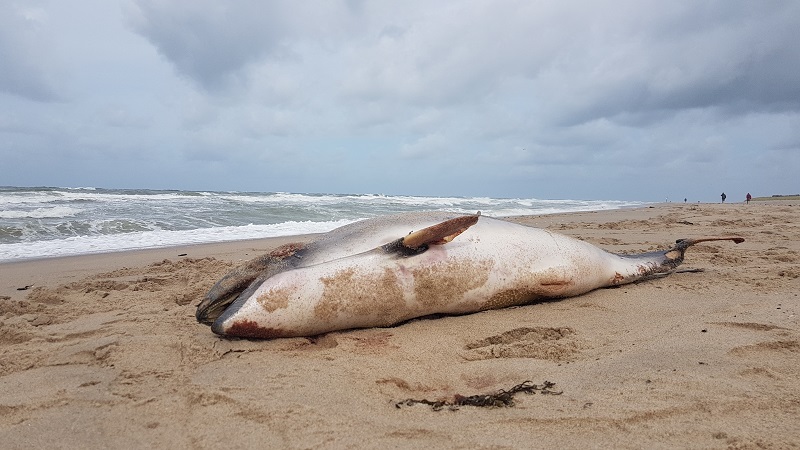 Vanmorgen diverse meldingen over een dode bruinvis op de vloedlijn bij P5 op het Maasvlaktestrand.