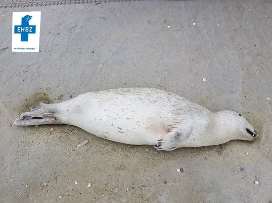 Een, nog maar kort ervoor overleden, gewone zeehond.