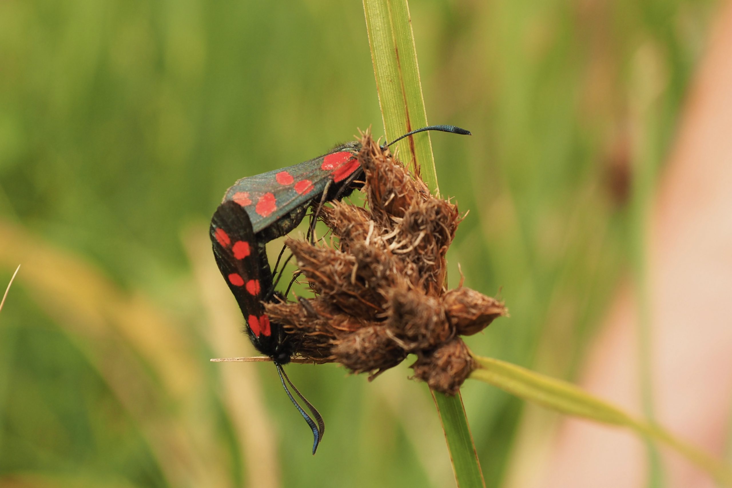 Op de schorren bloeit nu Zeebies, ook wel Heen genaamd. De zilte omgeving is een plek waar deze bies het goed doet. Struinend over de schorre van de Kwade Hoek stuitte ik op deze bloeiende bies waarop twee Sint-jansvlinders waren neergestreken. Wikipedia omschrijft deze vlinder als een dagactieve nachtvlinder. Voor een buitenstaander een niet zo logische benaming, maar een groot aantal nachtvlinders, er komen in Nederland ca 900 soorten voor, zijn ook overdag actief. Zo ook deze twee. Dagactief met in dit geval de paring. Nu spatten er hier niet de vonken vanaf, maar goed ook want gezien de lange duur van de activiteit (het kan uren in beslag nemen) zou dit wel erg veel energie kosten en slijtage geven. De natuur heeft het bij de vlinder als rustige en langdurende handeling geprogrammeerd. Het mannetje klemt met zijn achterlijf en vleugels het vrouwtje vast en laat niet los alvorens de transactie is afgerond. Zelfs indien gestoord blijven de twee in de vlucht aan elkaar gebonden. Het schijnt dat de klemmen van het mannetje per vlindersoort uniek zijn zodat geen vergissing mogelijk is. Het was een ideaal moment om te fotograferen: in 1 opname mannetje en vrouwtje Sint-Jansvlinder en de bloem van de Zeebies. Nog even overwogen om de vlinders te storen en het koppeltje in de vlucht te fotograferen. Is echter tegen de code en zeg nu zelf: zou U het appreciƫren als een paparazzo U zou opjagen onder dergelijke omstandigheden?